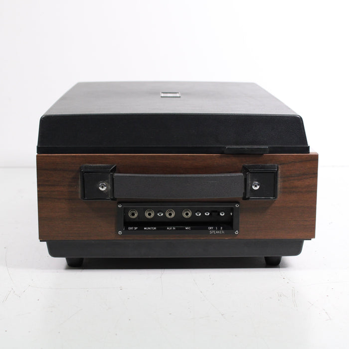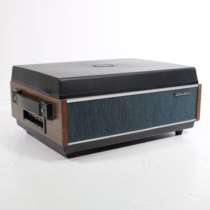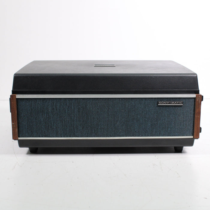 The Sony TC-106A is a versatile, compact two-track mono tapecorder. It features Sony's SONY-O-MATIC automatic system that controls the recording, so you have a choice between manual and auto control. It's housed in a wooden cabinet that's still in great shape despite its age. It also comes with an original Sony tapecorder protector that you drape over the unit; the cover is thick, protecting the unit from dust and wear-and-tear.